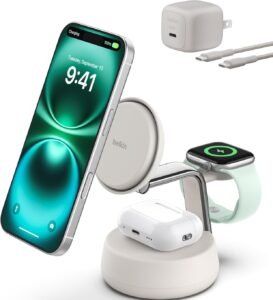 The Belkin UltraCharge Pro 3-in-1 Magnetic Charging Dock is one of the best all-in-one wireless chargers you can buy today — especially if you’re in the Apple ecosystem or have multiple devices that support magnetic alignment. It eliminates cable clutter, streamlines your daily charge routine, and delivers reliable power for your phone, earbuds, and smartwatch all in one sleek station.